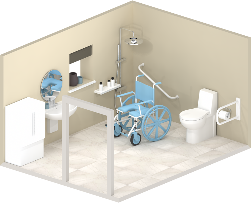The bathroom may need to be completely redesigned to make it comfortable and functional for the wheelchair user. Plenty of room must be left for access and manoeuvring.