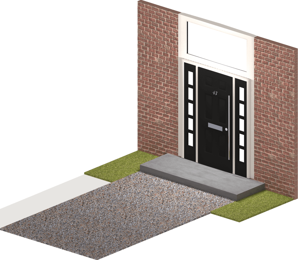 Ramps can replace steps, but should be at a gradient of at least 1:12, making it easier for the wheelchair user to access the house independently.