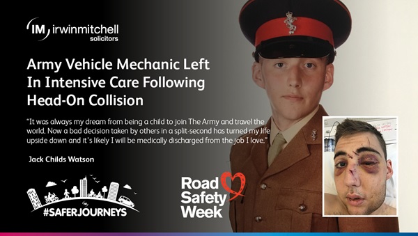Jack Childs Watson is using Road Safety Week to speak for the first time about his battle to overcome life-changing injuries he suffered when two cars crashed into his vehicle as they attempted to overtake a lorry and a coach on the A423.